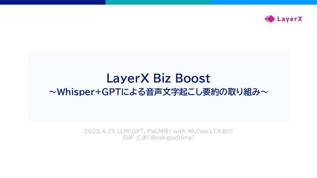 LayerX Biz Boost 〜Whisper+GPTによる音声文字起こし要約の取り組み〜 2023.4.25 LLM(GPT, PaLM等) with MLOps LT大会!!!