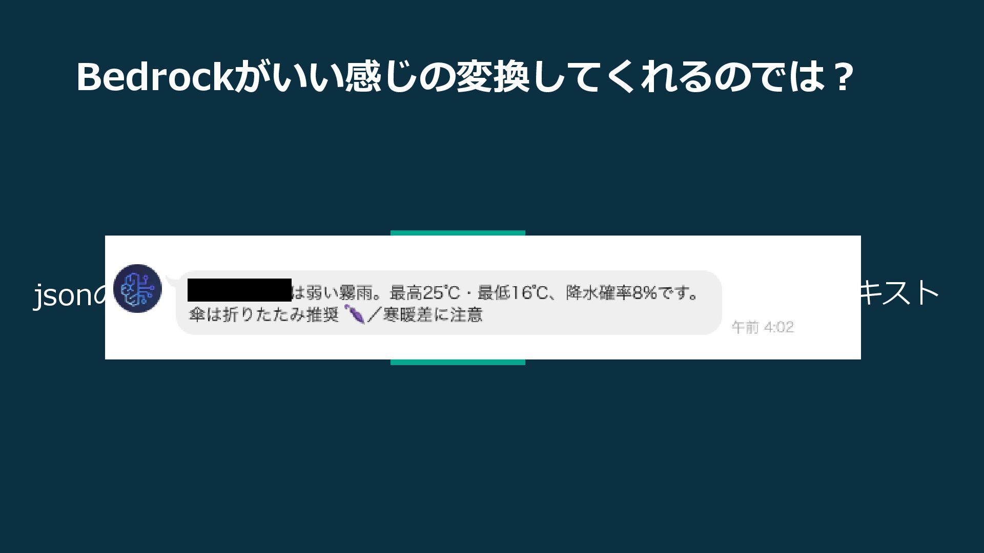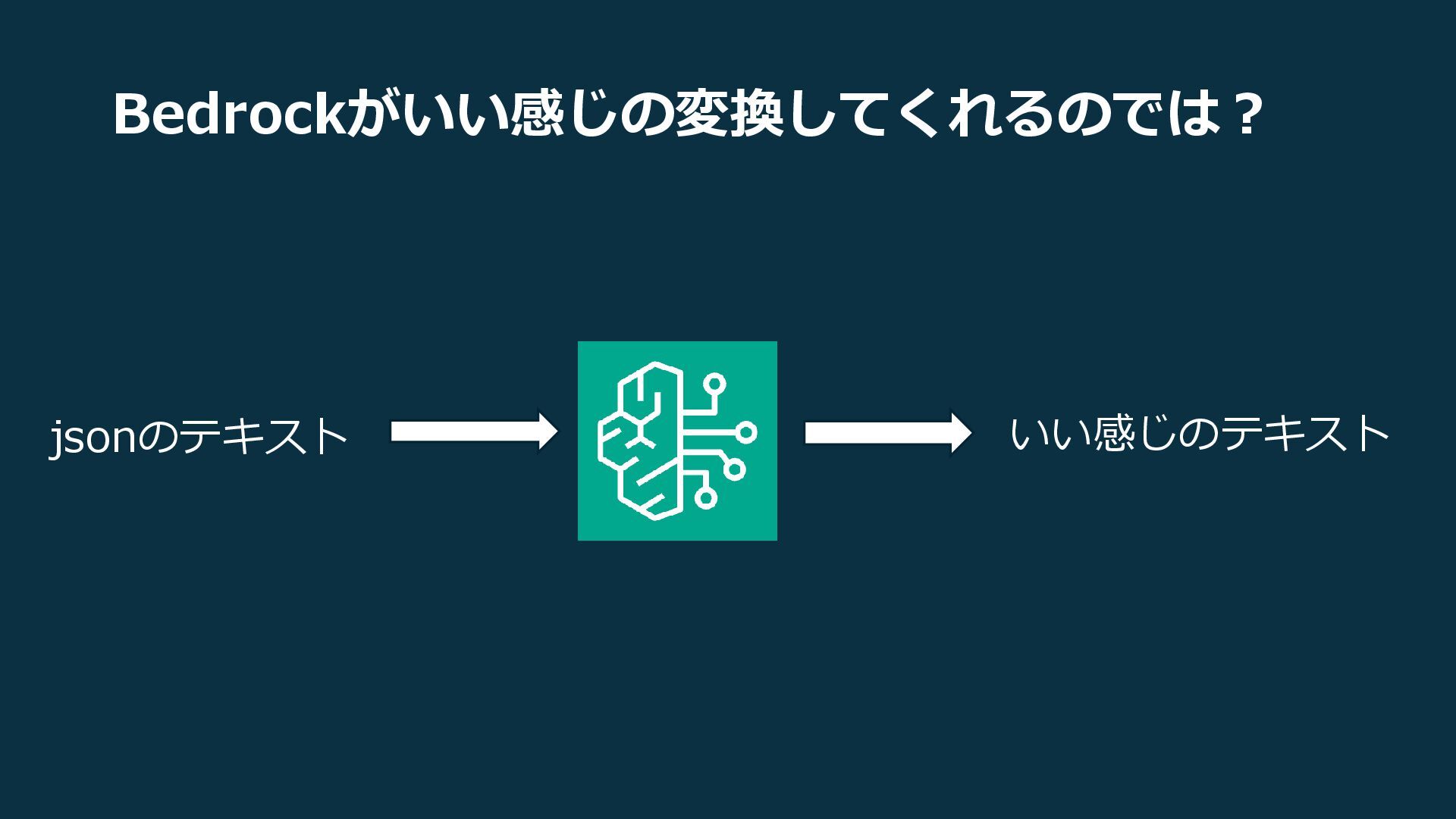 Bedrockがいい感じの変換してくれるのでは? いい感じのテキスト jsonのテキスト