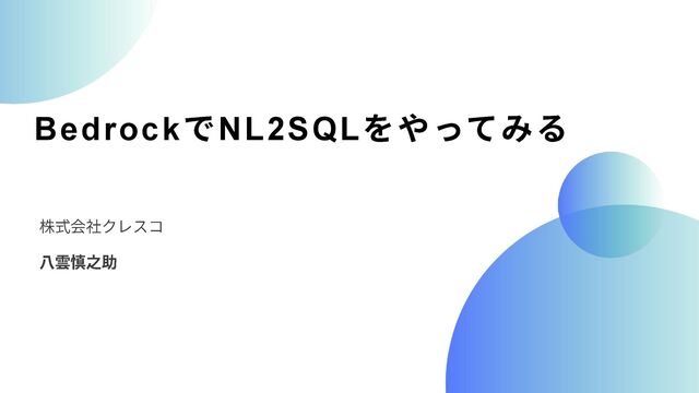 BedrockでNL2SQLをやってみる