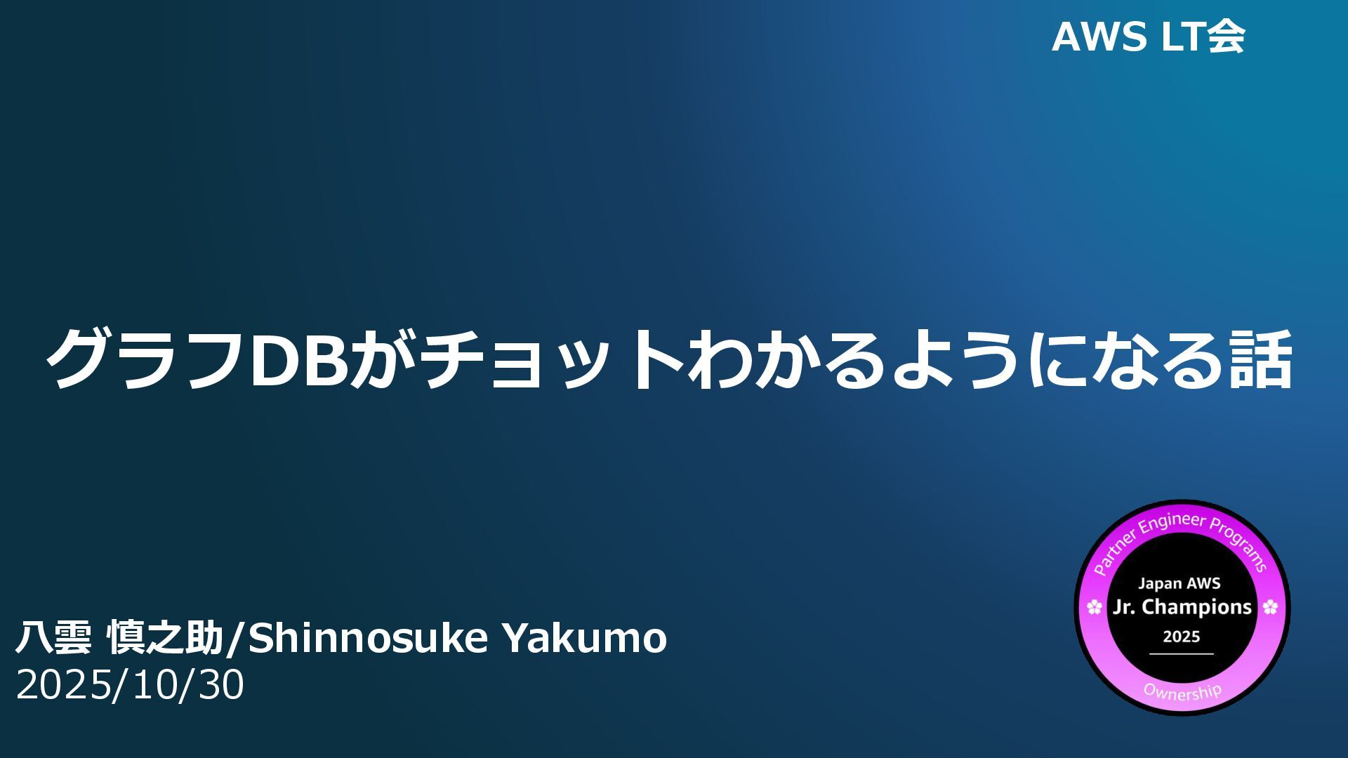 グラフDBがチョットわかるようになる話 八雲 慎之助/Shinnosuke Yakumo 2025/10/30 AWS LT会