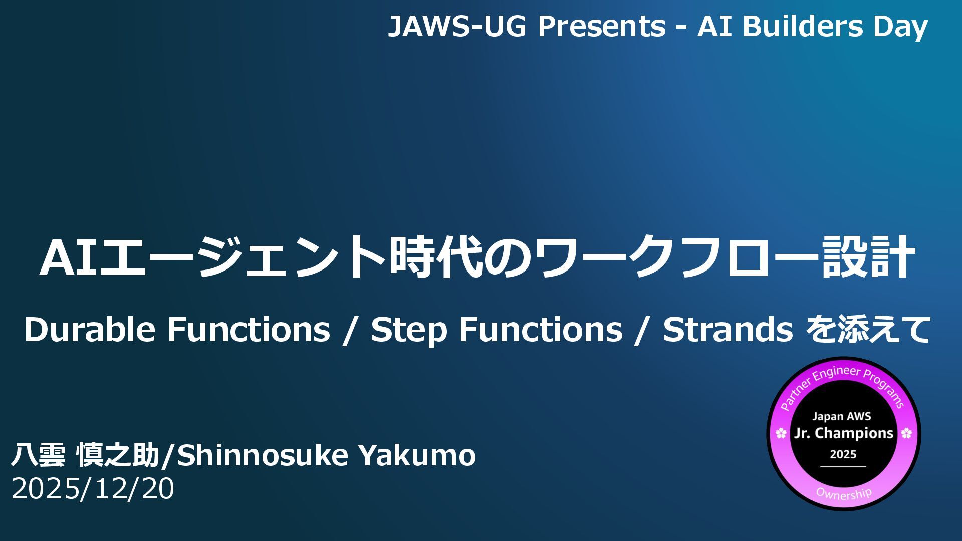 慎之助/Shinnosuke Yakumo 2025/12/20 JAWS-UG Presents - AI Builders Day