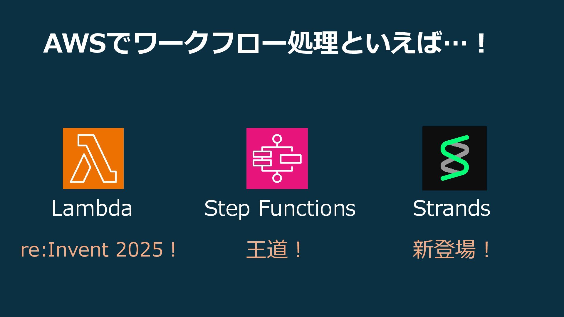 Lambda Step Functions Strands AWSでワークフロー処理といえば…! re:Invent 2025! 王道! 新登場!