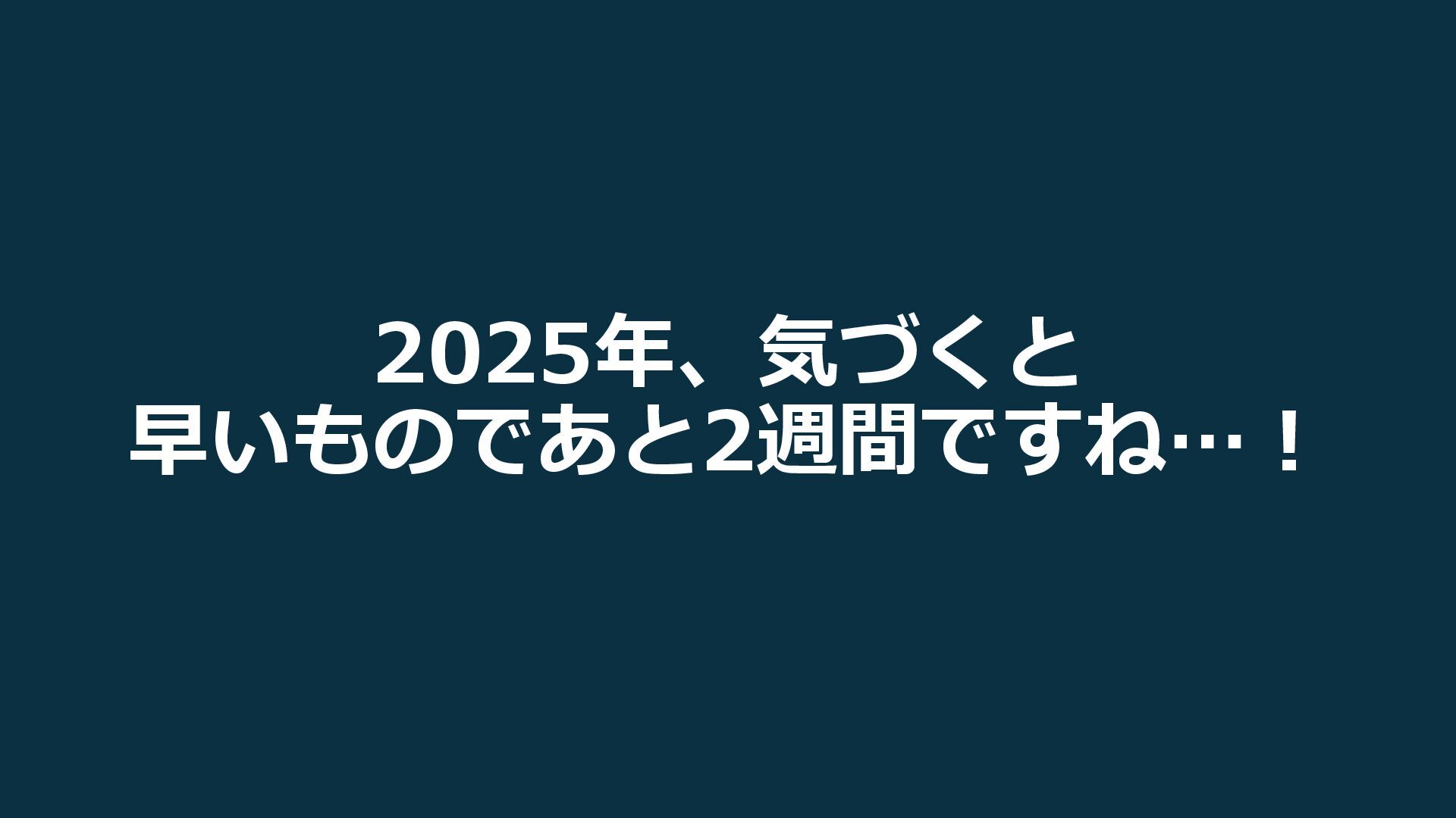 2025年、気づくと 早いものであと2週間ですね…!
