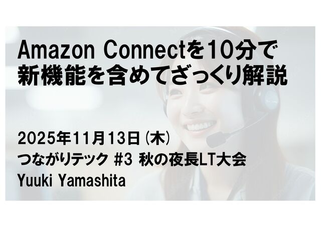 Amazon Connectを10分で 新機能を含めてざっくり解説 つながりテック #3 秋の夜長LT大会 2025年11月13日(木) Yuuki Yamashita