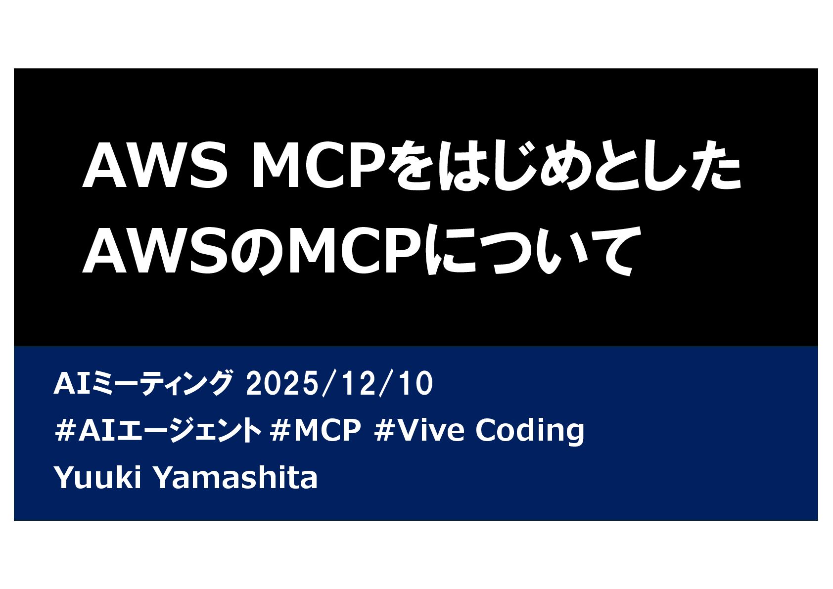 AWS MCPをはじめとした AWSのMCPについて AIミーティング 2025/12/10 #AIエージェント #MCP #Vive Coding Yuuki