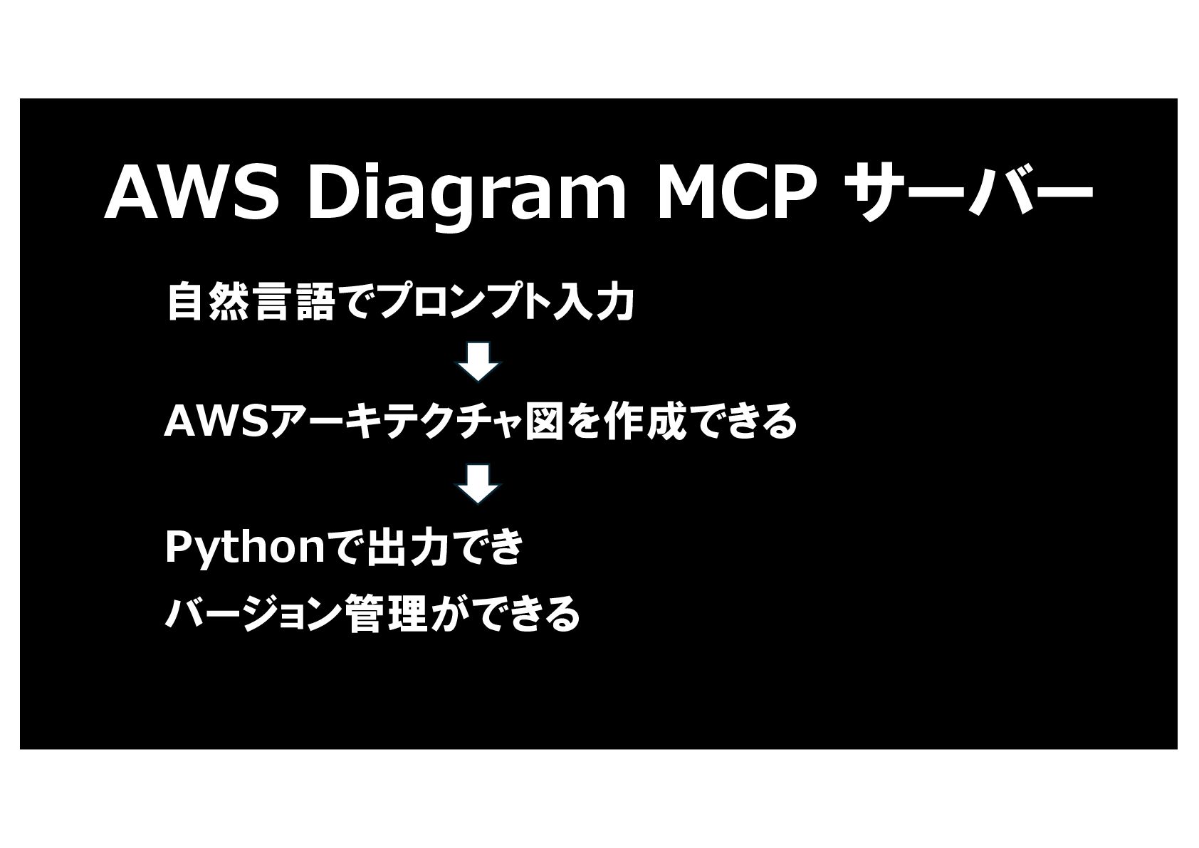 AWS Diagram MCP サーバー 自然言語でプロンプト入力 AWSアーキテクチャ図を作成できる Pythonで出力でき バージョン管理ができる