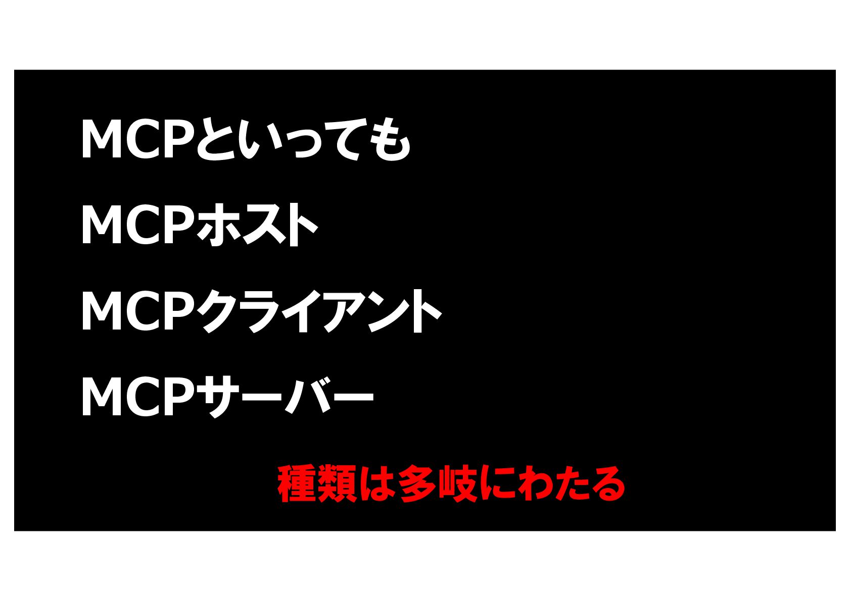 MCPといっても MCPホスト MCPクライアント MCPサーバー 種類は多岐にわたる