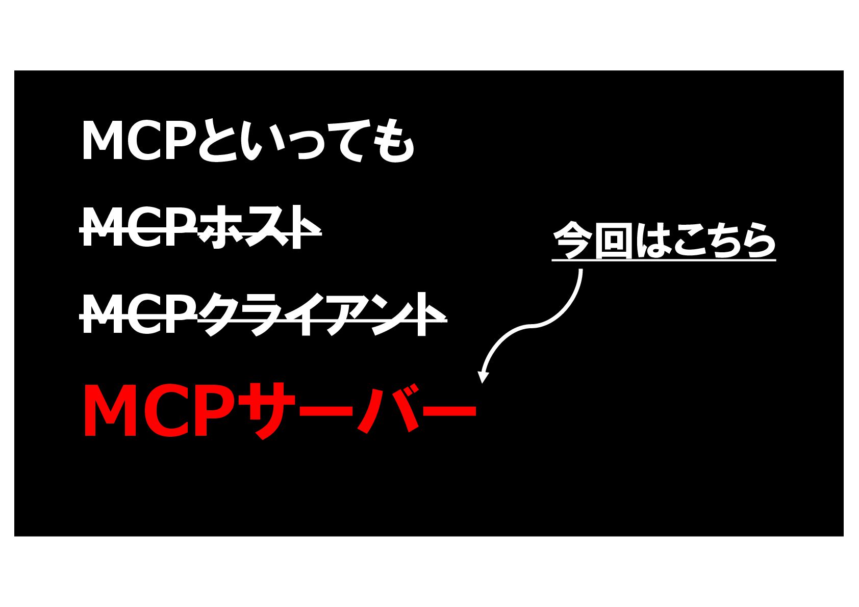 MCPといっても MCPホスト MCPクライアント MCPサーバー 今回はこちら