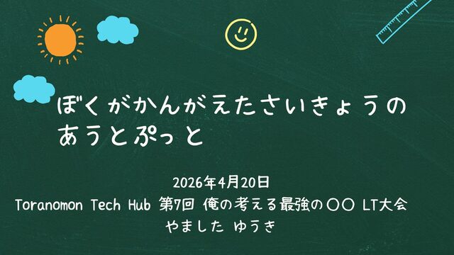 ぼくがかんがえたさいきょうの あうとぷっと Toranomon Tech Hub 第7回 俺の考える最強の◦◦ LT大会 やました ゆうき