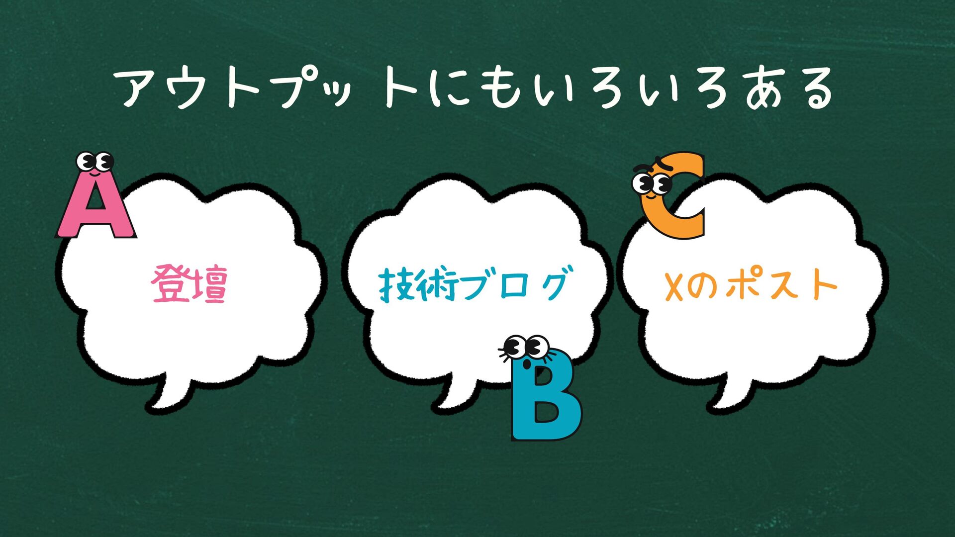 アウトプットにもいろいろある 登壇 技術ブログ Xのポスト
