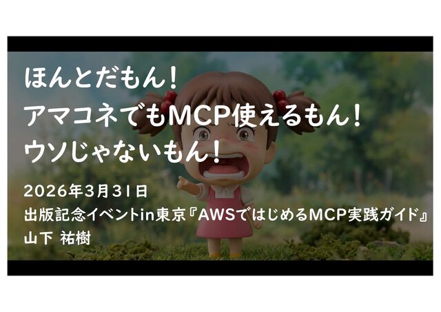 ほんとだもん! アマコネでもMCP使えるもん! 出版記念イベントin東京『AWSではじめるMCP実践ガイド』 2026年3月31日 山下 祐樹 ウソじゃないもん!