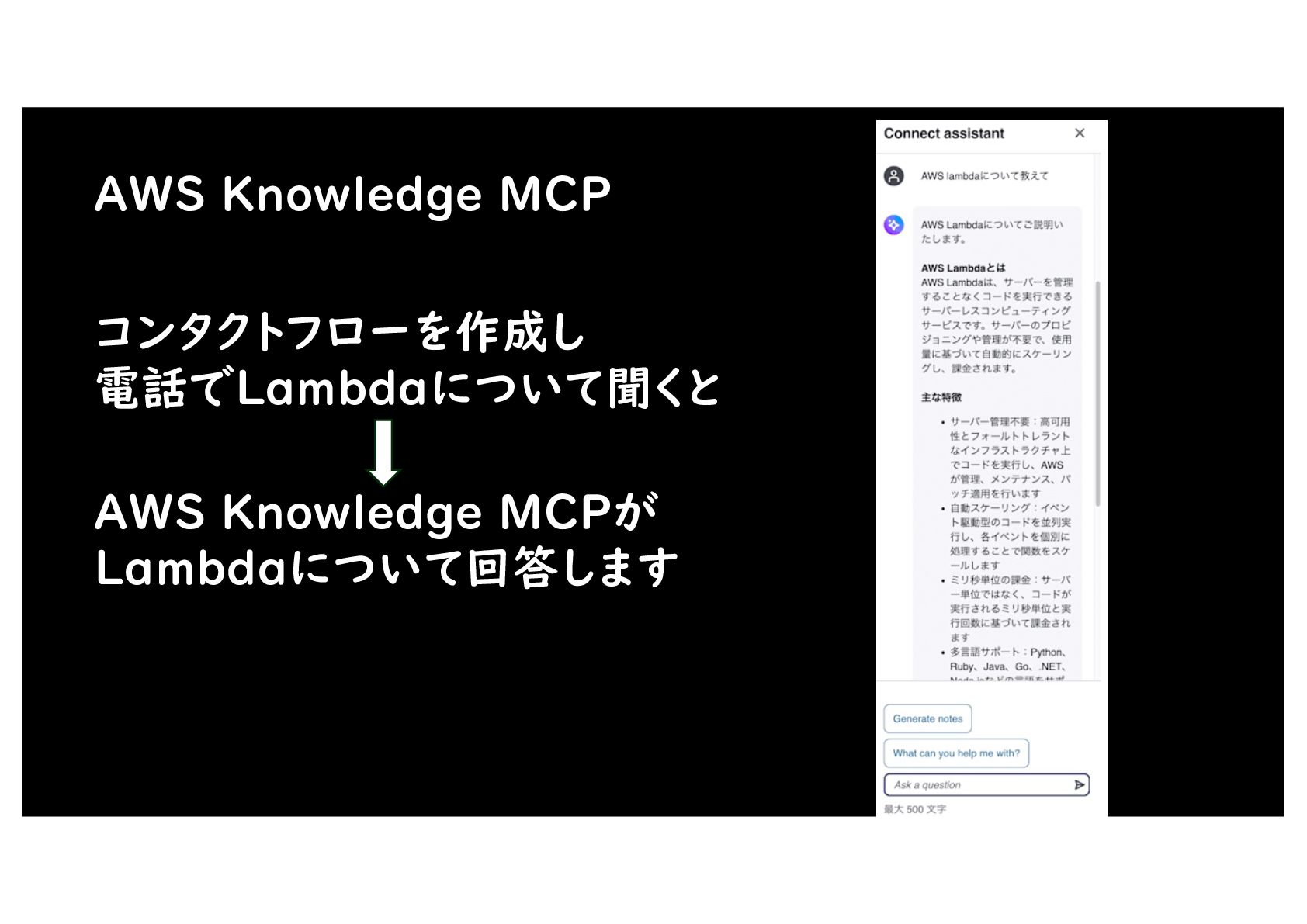AWS Knowledge MCP コンタクトフローを作成し 電話でLambdaについて聞くと AWS Knowledge MCPが Lambdaについて回答します