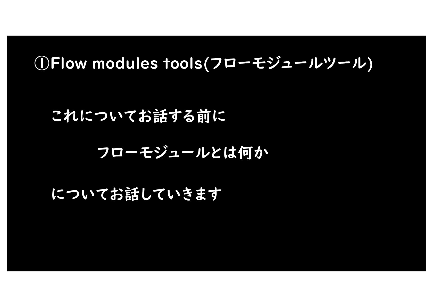 ①Flow modules tools(フローモジュールツール) これについてお話する前に フローモジュールとは何か についてお話していきます