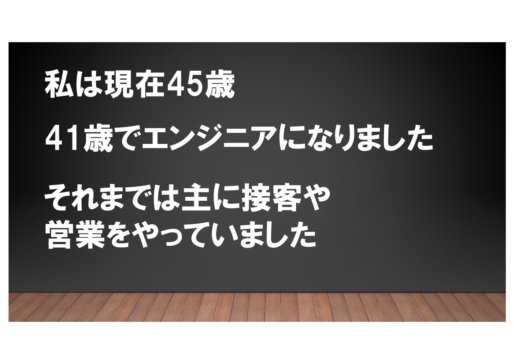 私は現在45歳 41歳でエンジニアになりました それまでは主に接客や 営業をやっていました
