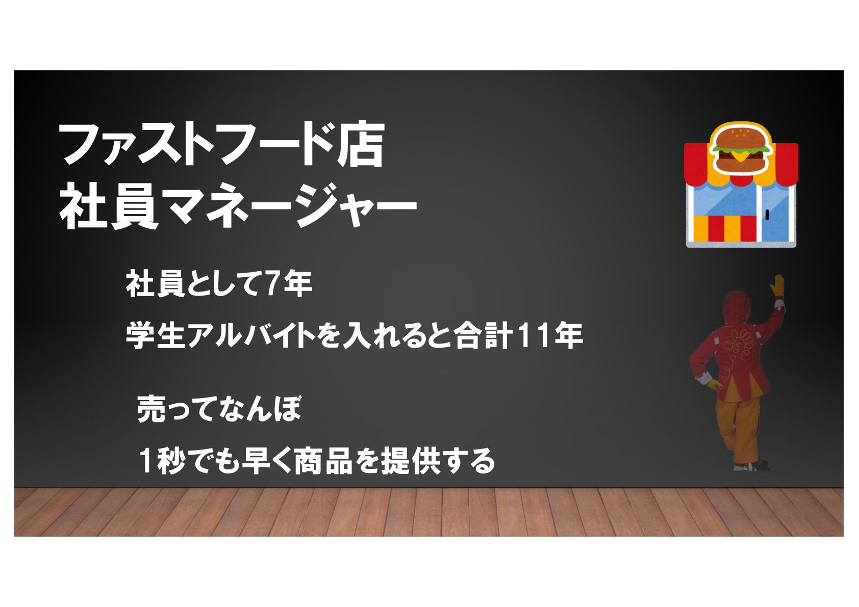 ファストフード店 社員マネージャー 社員として7年 学生アルバイトを入れると合計11年 売ってなんぼ 1秒でも早く商品を提供する
