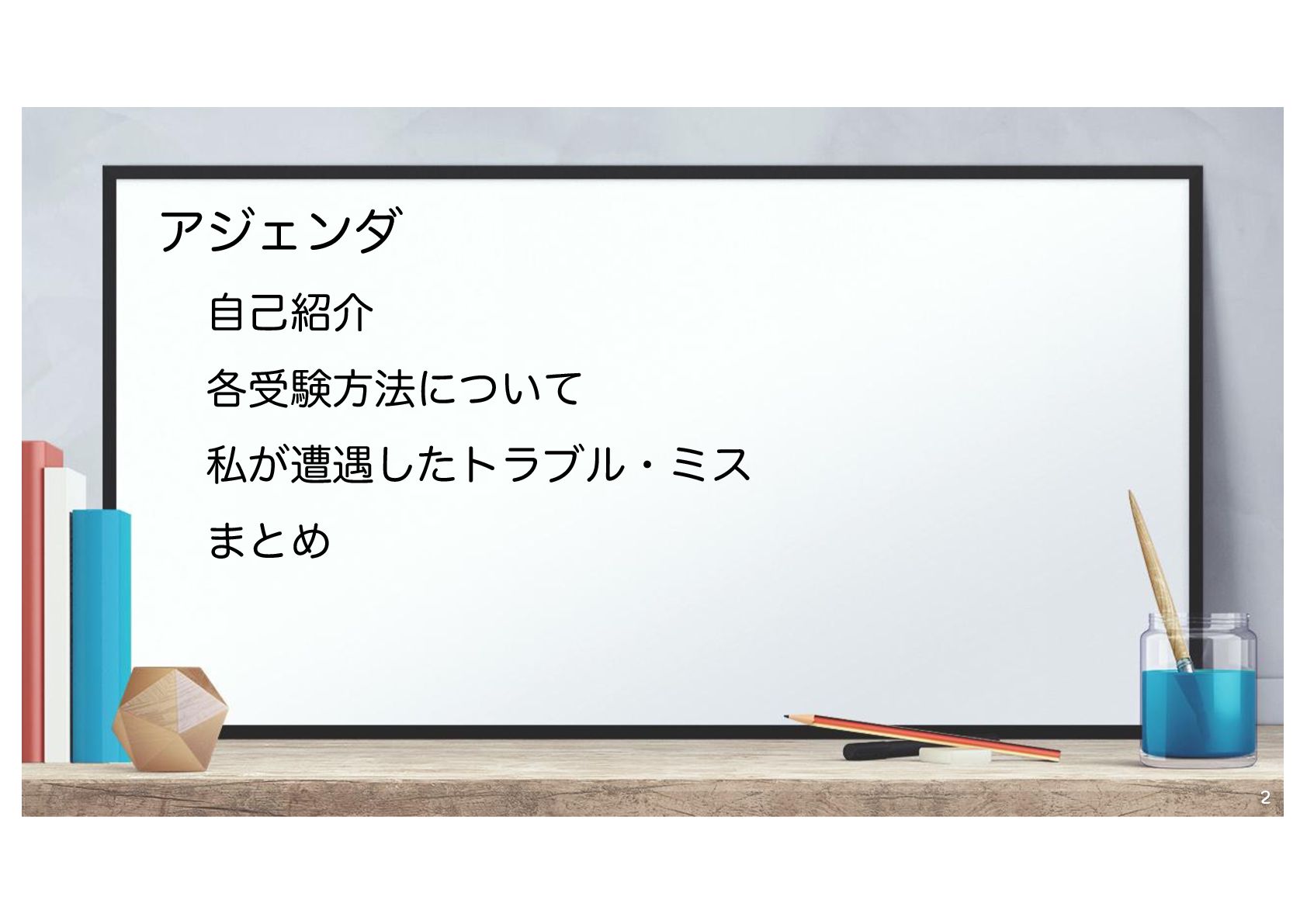 2 ΞδΣϯμ ࣗݾհ ֤डݧํ๏ʹ͍ͭͯ ࢲ͕ૺ۰ͨ͠τϥϒϧɾϛε ·ͱΊ