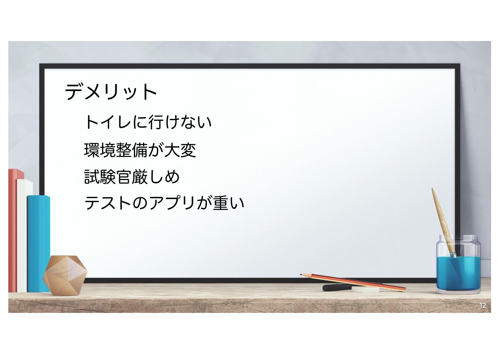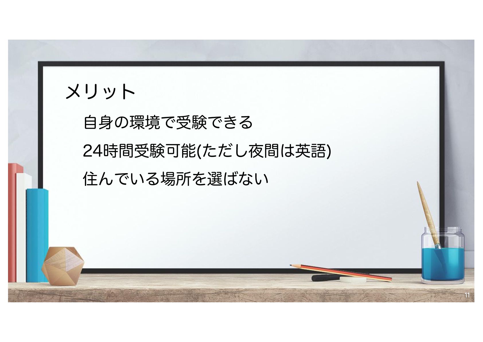 11 ϝϦοτ ࣗͷڥͰडݧͰ͖Δ ࣌ؒडݧՄೳ ͨͩؒ͠ӳޠ ॅΜͰ͍ΔॴΛબͳ͍