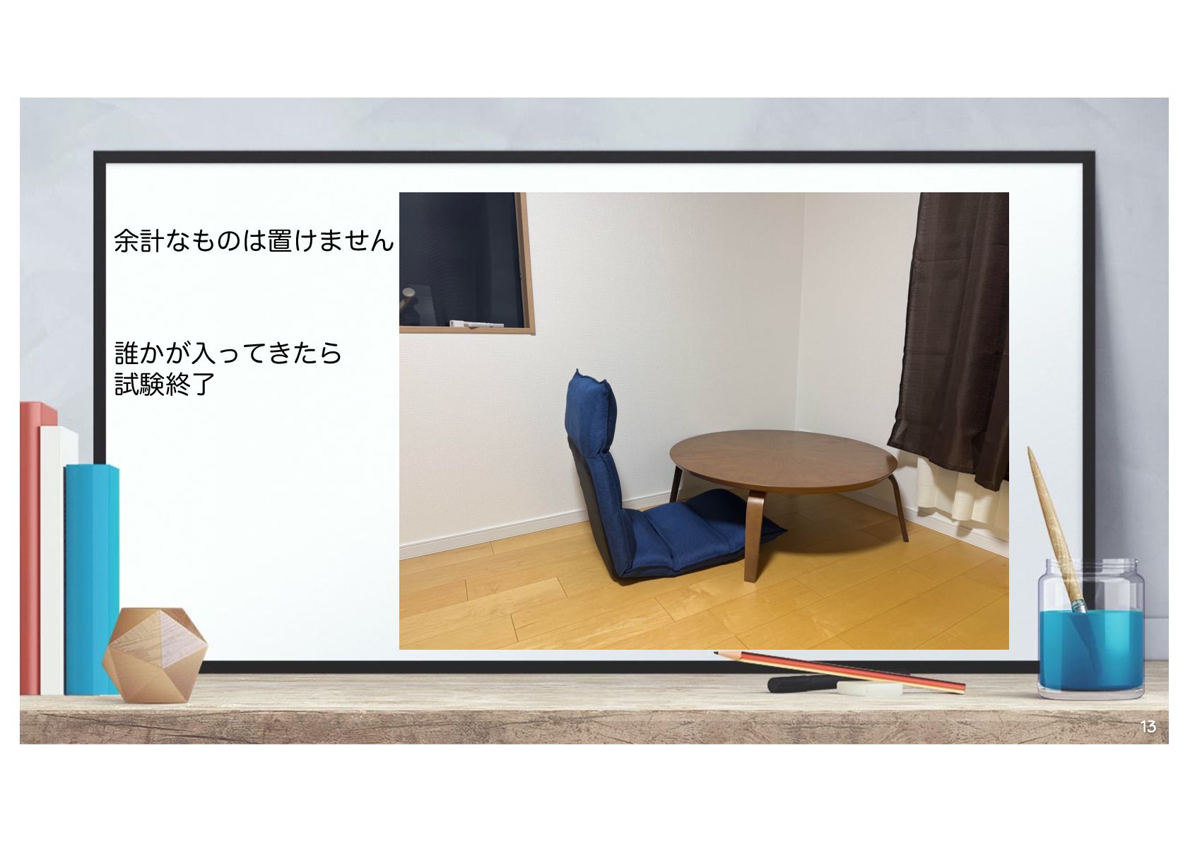 13 ༨ܭͳͷஔ͚·ͤΜ ୭͔͕ೖ͖ͬͯͨΒ ࢼݧऴྃ