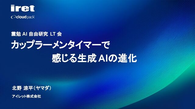 北野 涼平(ヤマダ) アイレット株式会社 カップラーメンタイマーで 感じる生成 AIの進化 雲勉 AI 自由研究 LT