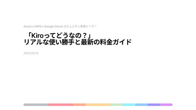 Azure x AWS x Google Cloud コミュニティ本音トーク! 「Kiroってどうなの?」 リアルな使い勝手と最新の料金ガイド 2025/10/15