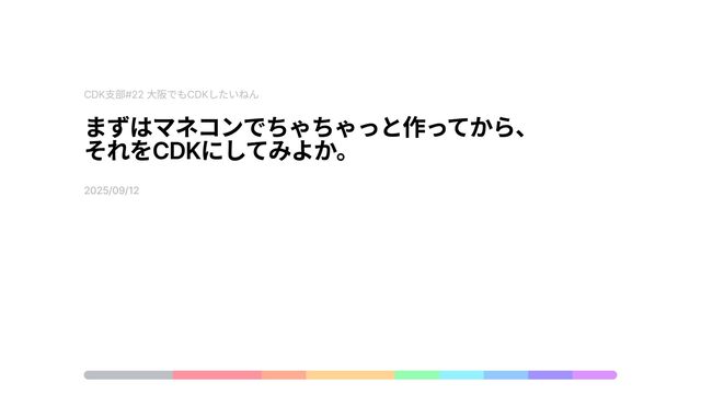 CDK支部#22 大阪でもCDKしたいねん まずはマネコンでちゃちゃっと作ってから、 それをCDKにしてみよか。 2025/09/12