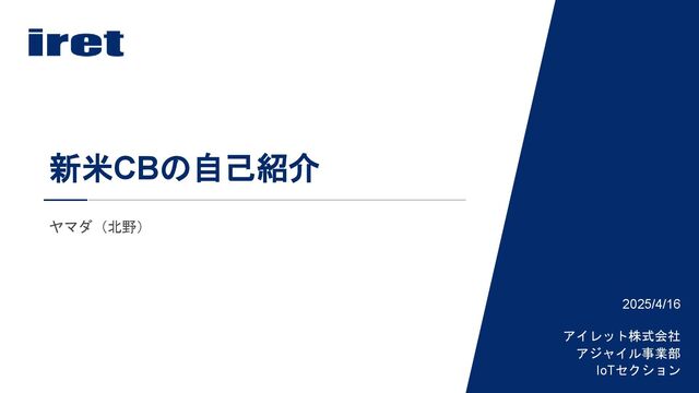 ヤマダ(北野) 新米CBの自己紹介 2025/4/16 アイレット株式会社 アジャイル事業部 IoTセクション