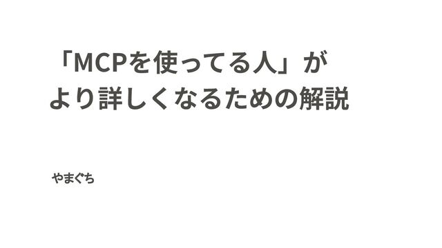 このプレゼンテーションは、「MCPを使ってる人」がより詳しくなるための解説を目的としています。