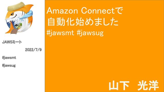 Amazon Connectで 自動化始めました #jawsmt #jawsug JAWSミート 2022/7/9 #jawsmt #jawsug 山下 光洋