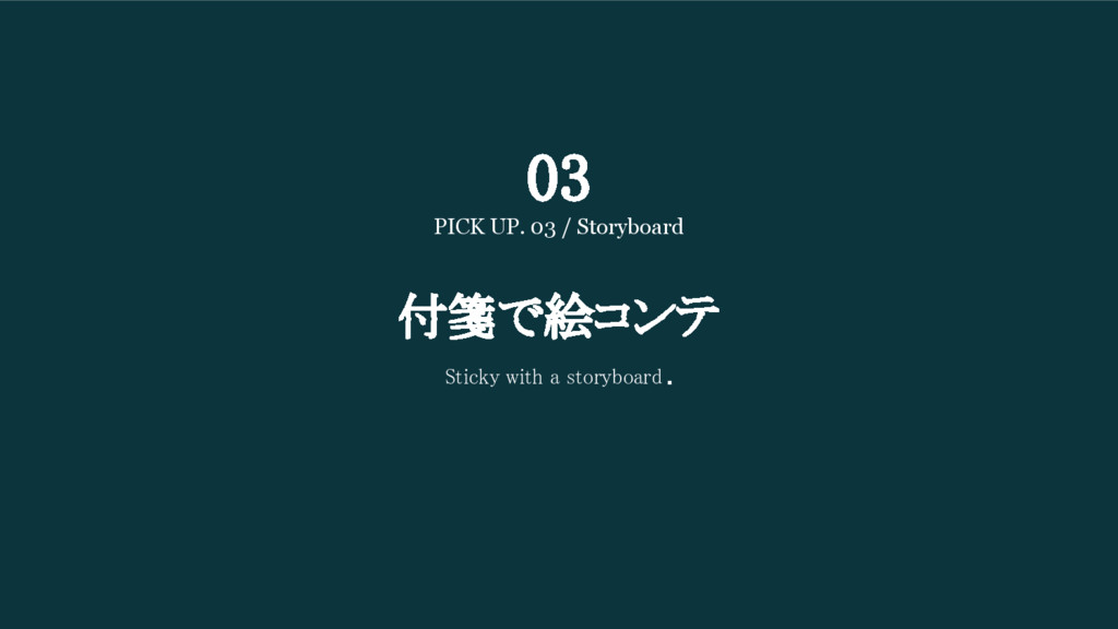 Sticky with a storyboard . 付箋で絵コンテ 03 PICK UP. 03