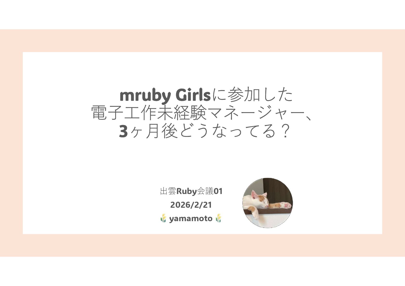 mruby Girlsに参加した 電子工作未経験マネージャー、 3ヶ月後どうなってる? 出雲Ruby会議01 2026/2/21 yamamoto