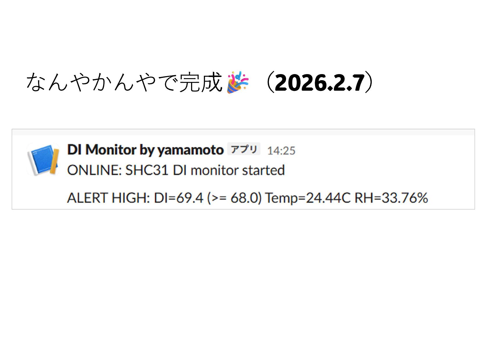 【お題】 Atom Matrix × SHC31(温湿度計) 不快指数が閾値を外れたら slackに通知するプログラム