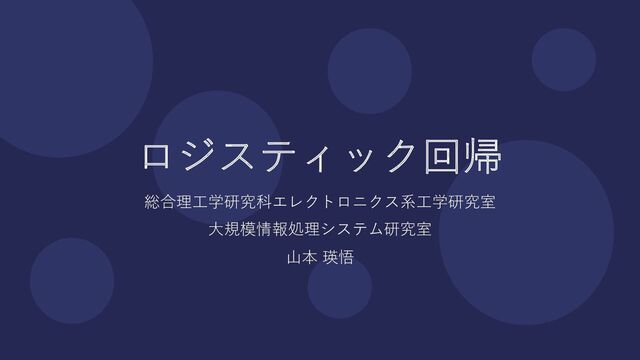 ロジスティック回帰 総合理⼯学研究科エレクトロニクス系⼯学研究室 ⼤規模情報処理システム研究室 ⼭本 瑛悟