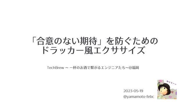 「合意のない期待」を防ぐための ドラッカー⾵エクササイズ 2023-05-19 @yamamoto-febc TechBrew 〜 ⼀杯のお酒で繋がるエンジニアたち〜@福岡
