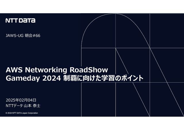 Japan Corporation JAWS-UG 朝会#66 2025年02月04日 NTTデータ 山本 泰士 AWS Networking RoadShow Gameday 2024 制覇に向けた学習のポイント
