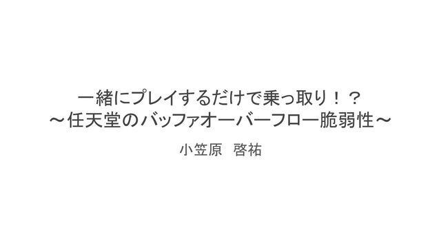 一緒にプレイするだけで乗っ取り!? ~任天堂のバッファオーバーフロー脆弱性~ 小笠原 啓祐