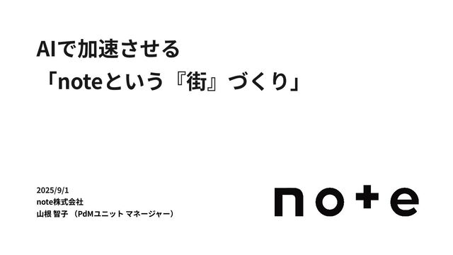 AIで加速させる 「noteという『街』づくり」 2025/9/1 note株式会社 ⼭根 智⼦ (PdMユニット マネージャー)