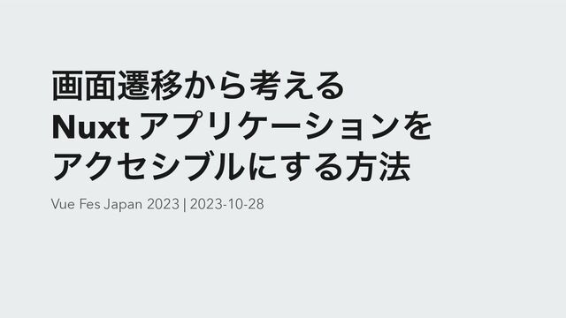 しかし、これらの手法は情報が正しく伝わるかどうかのアクセシビリティ観点から考慮が必要なものです。 本セッションでは、画面遷移時にどのように情報が伝わっているのか、Nuxt アプリケーションをよりアクセシブルにするためのアプローチを実装例を元に紹介します。