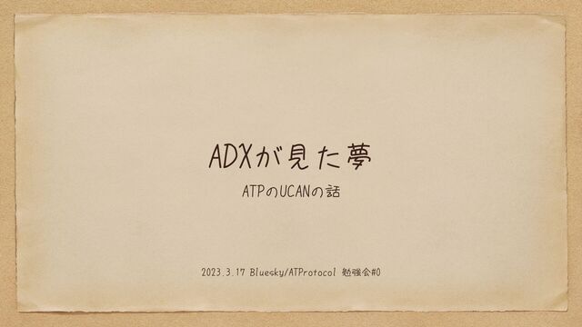ADXが見た夢 ATPのUCANの話 2023.3.17 Bluesky/ATProtocol 勉強会#0