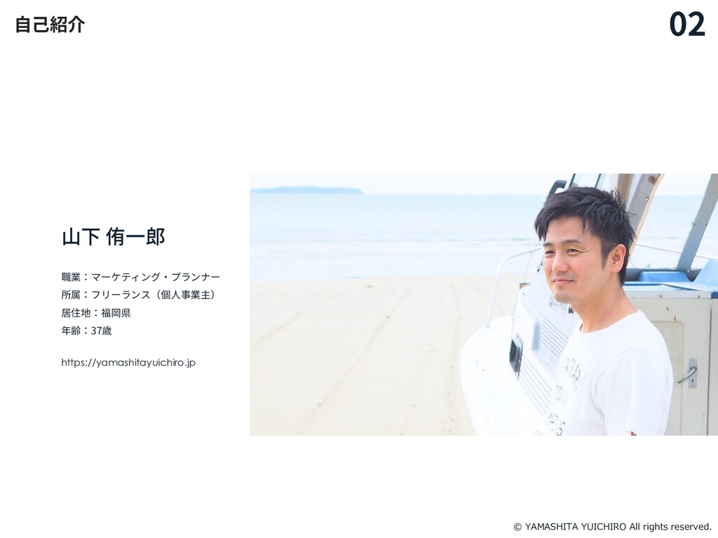 © YAMASHITA YUICHIRO All rights reserved. ⾃⼰紹介 02 ⼭下 侑⼀郎