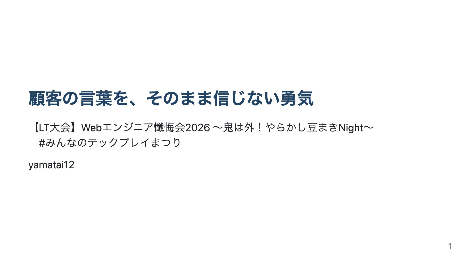 顧客の言葉を、そのまま信じない勇気 【LT大会】Webエンジニア懺悔会2026 ~鬼は外!やらかし豆まきNight~ #みんなのテックプレイまつり yamatai12 1