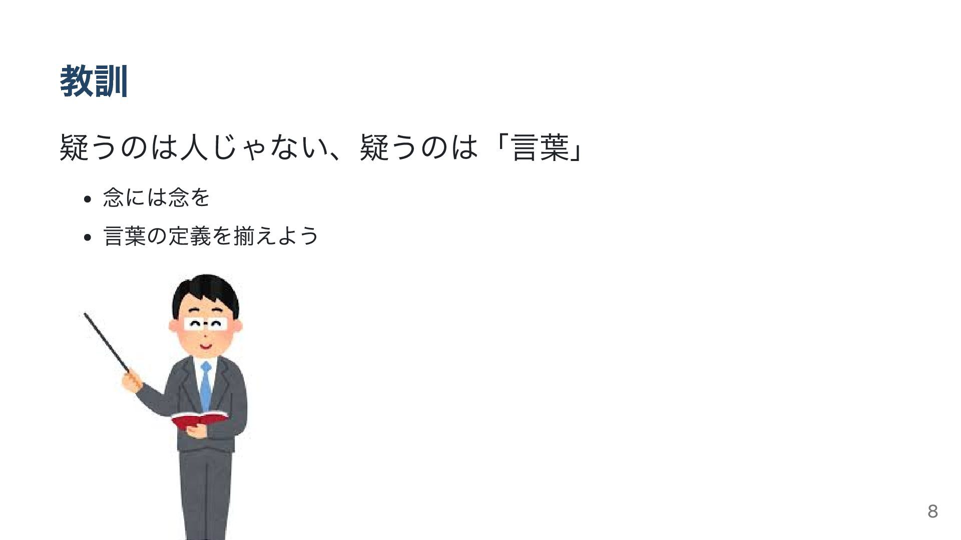 教訓 疑うのは人じゃない、疑うのは「言葉」 念には念を 言葉の定義を揃えよう 8