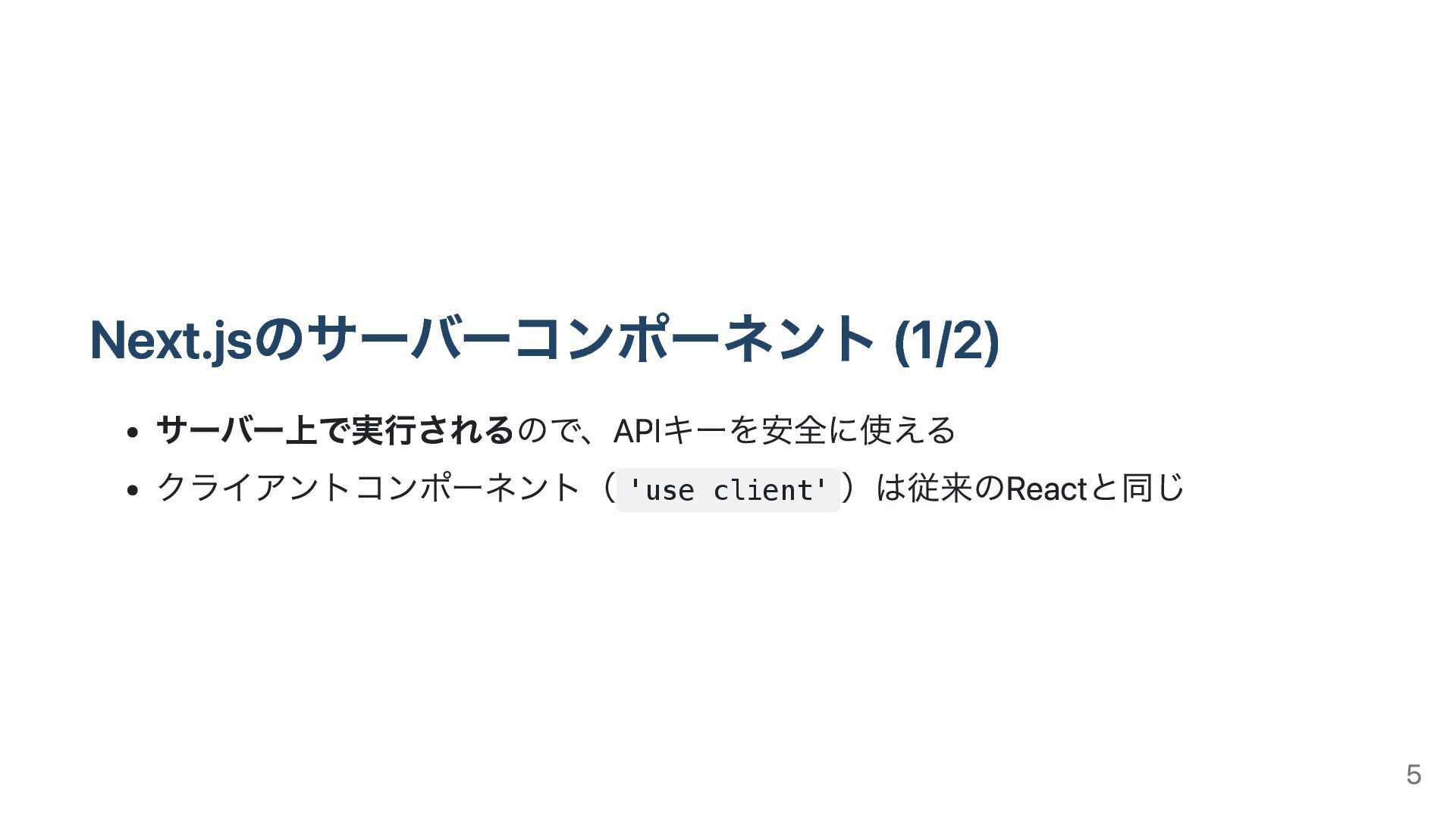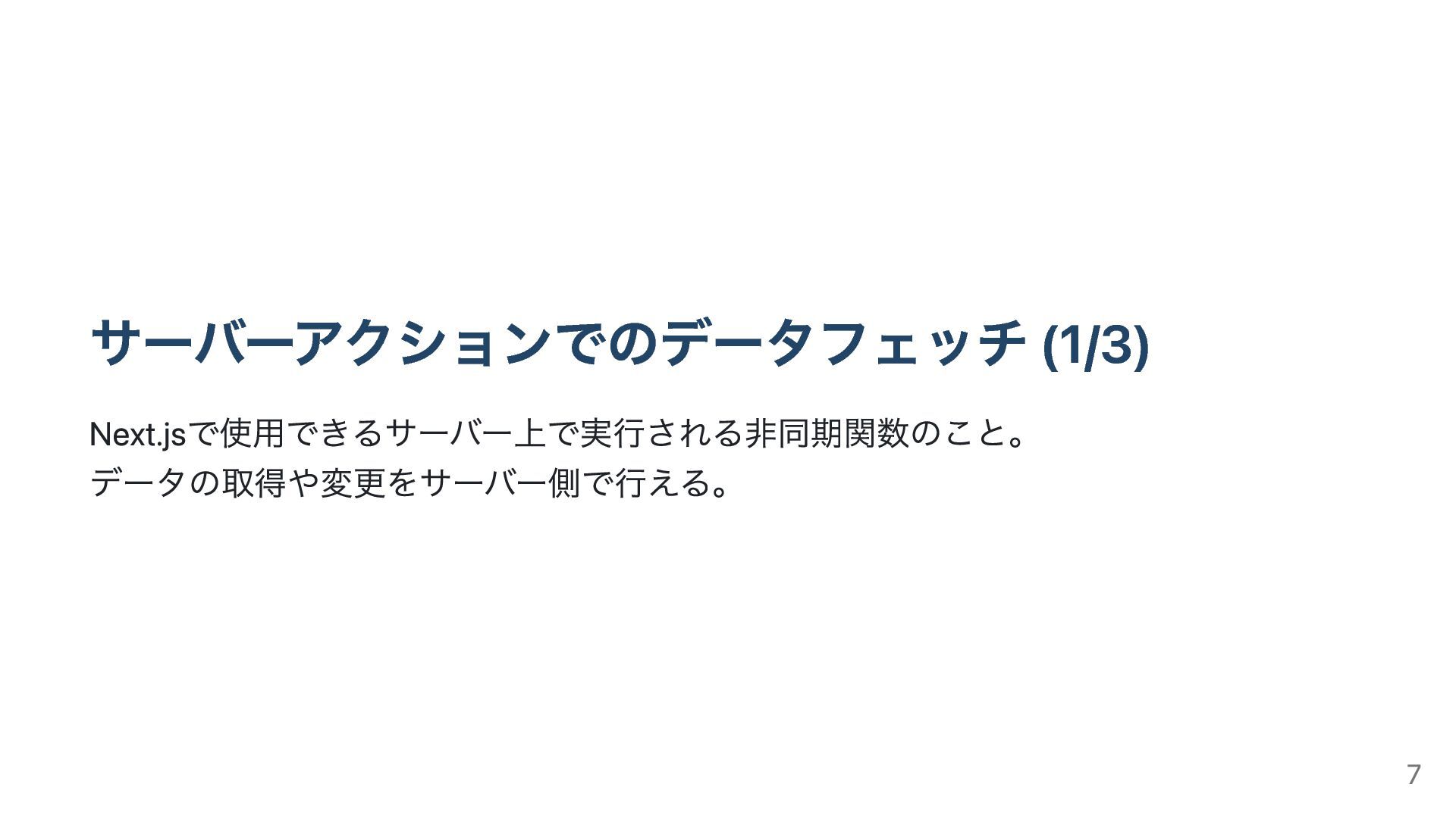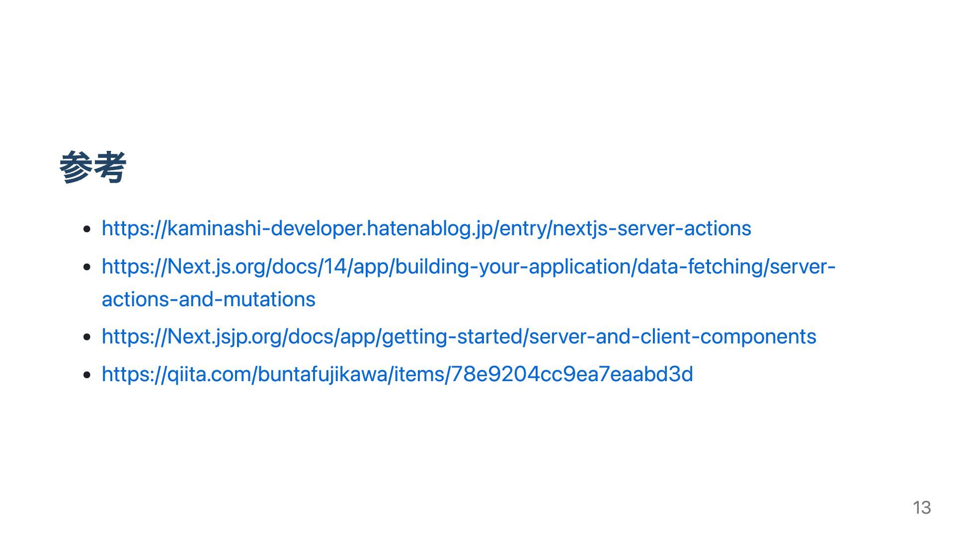 "react"; import { likeTweet } from "@/lib/actions"; export default function LikeButton({ tweetId, initialLikes, }: { tweetId: string; initialLikes: number; }) { const [likes, setLikes] = useState(initialLikes); const [isPending, startTransition] = useTransition(); return ( <button type="button" disabled={isPending} onClick={() => { startTransition(async () => { const nextLikes = await likeTweet(tweetId); // mutation(サーバーで更新) setLikes(nextLikes); }); }} ... 8