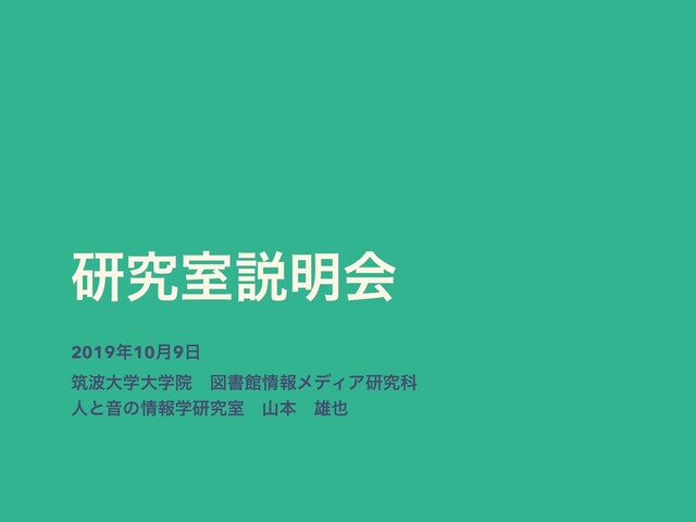 ݚڀࣨઆ໌ձ 201910݄9 ஜେֶେֶӃɹਤॻؗใϝσΟΞݚڀՊ ਓͱԻͷใֶݚڀࣨɹࢁຊɹ༤