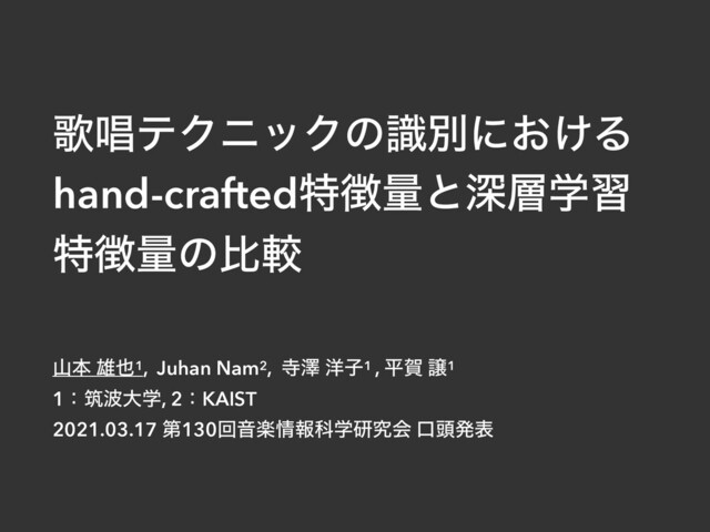 Wahl, and B. Pardo,“Vo- calset: A singing voice dataset,” in ISMIR 2018, 2018. • [Abesser 19] J. Abesser and M. Muller, ”Fundamental Frequency Contour Classi fi cation: A Comparison between Hand- crafted and CNN-based Features,” in ICASSP 2019, 2019. • [Kroher 14] N. Kroher and E.Gomez. ”Automatic singer identi fi ca- tion for improvisational styles based on vibrato, timbre and statistical performance descriptors.” in ICMC-SMC 2014, 2014. • [Breiman 01] L. Breiman. ”Random forests,” Machine learning, Vol. 45, No. 1, pp. 5-32, 2001. • [Chen 04] C. Chen, A. Liaw, L. Breiman: Using Random Forest to Learn Imbalanced Data, Technical Report, No.666, 2004. • [Luo 20] Yin-Jyun Luo, Chin-Cheng Hsu, Kat Agres, and Dorien Herremans. Singing voice conversion with disentangled representations of singer and vocal technique using vari- ational autoencoders. In Proceedings of the IEEE International Conference on Acous- tics, Speech, and Signal Processing (ICASSP), pp. 3277–3281. IEEE, 2020. • [Pishdadian 19] F. Pishdadian, B. Kim, P. Seetharaman, and B. Pardo. ”Classifying non-speech vocals: Deep vs signal process- ing representations.” in Acoustic Scenes and Events 2019 Workshop (DCASE2019), 2019. • [Dridger 16] J. Driedger, S. Balke, S. Ewert, and M. Muller. ”Template-based vibrato analysis in music signals.” in ISMIR 2016, 2016. • [Wang 20] C. Wang, V. Lostanlen, E. Benetos, and E. Chew. Playing technique recognition by joint time–frequency scattering. In Proceedings of the IEEE International Conference on Acoustics, Speech, and Signal Processing (ICASSP), pp. 881–885. IEEE, 2020.