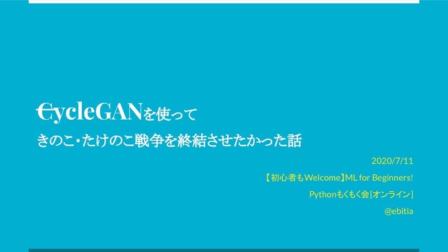 CycleGANを使って きのこ・たけのこ戦争を終結させたかった話 2020/7/11 【初心者もWelcome】ML for Beginners! Pythonもくもく会[オンライン] @ebitia