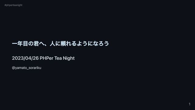一年目の君へ、人に頼れるようになろう 2023/04/26 PHPer Tea Night @yamato_sorariku #phperteanight 1