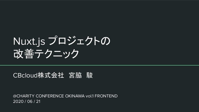 Nuxt.js プロジェクトの 改善テクニック CBcloud株式会社 宮脇 駿 @CHARITY CONFERENCE OKINAWA vol.1 FRONTEND 2020