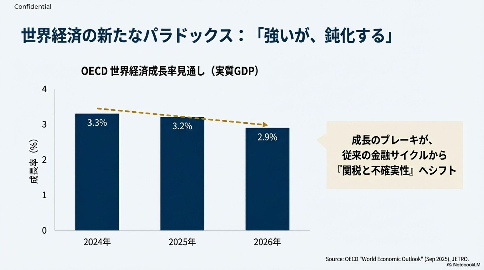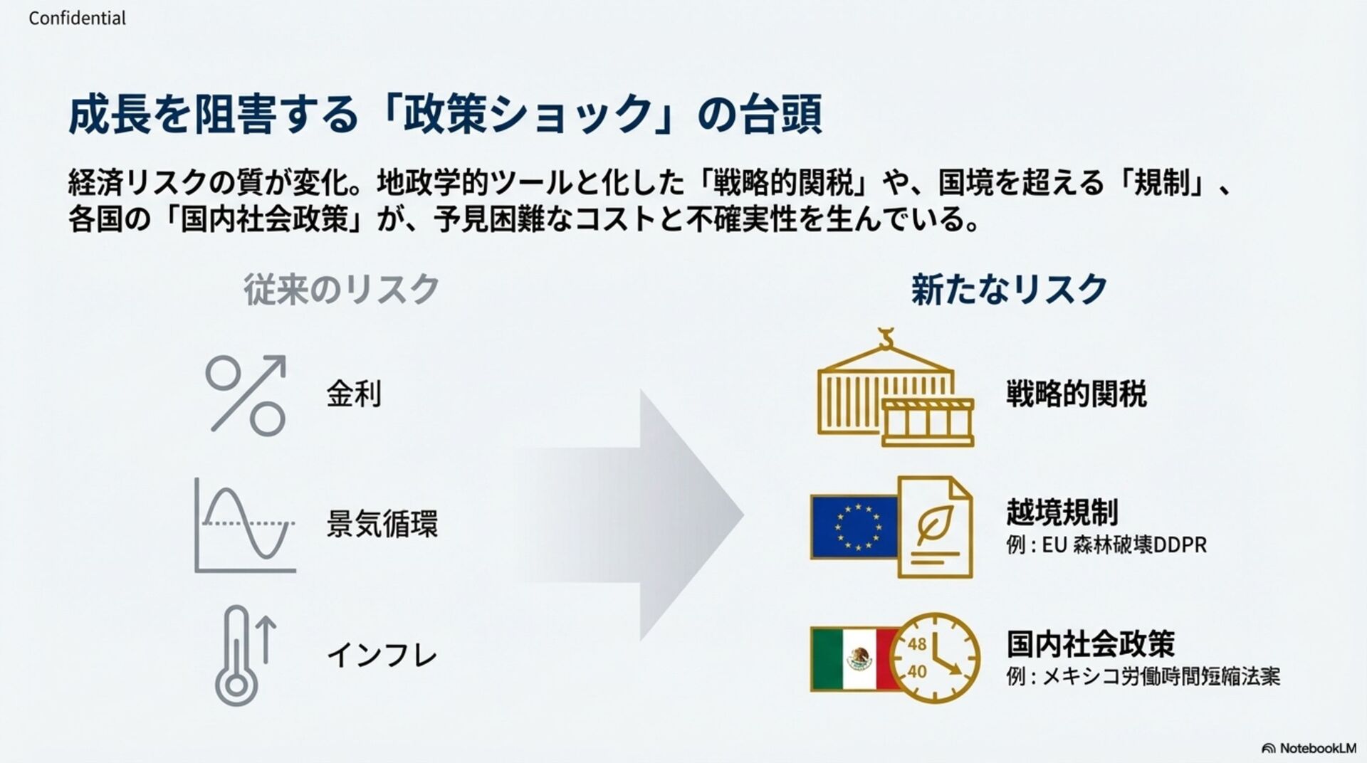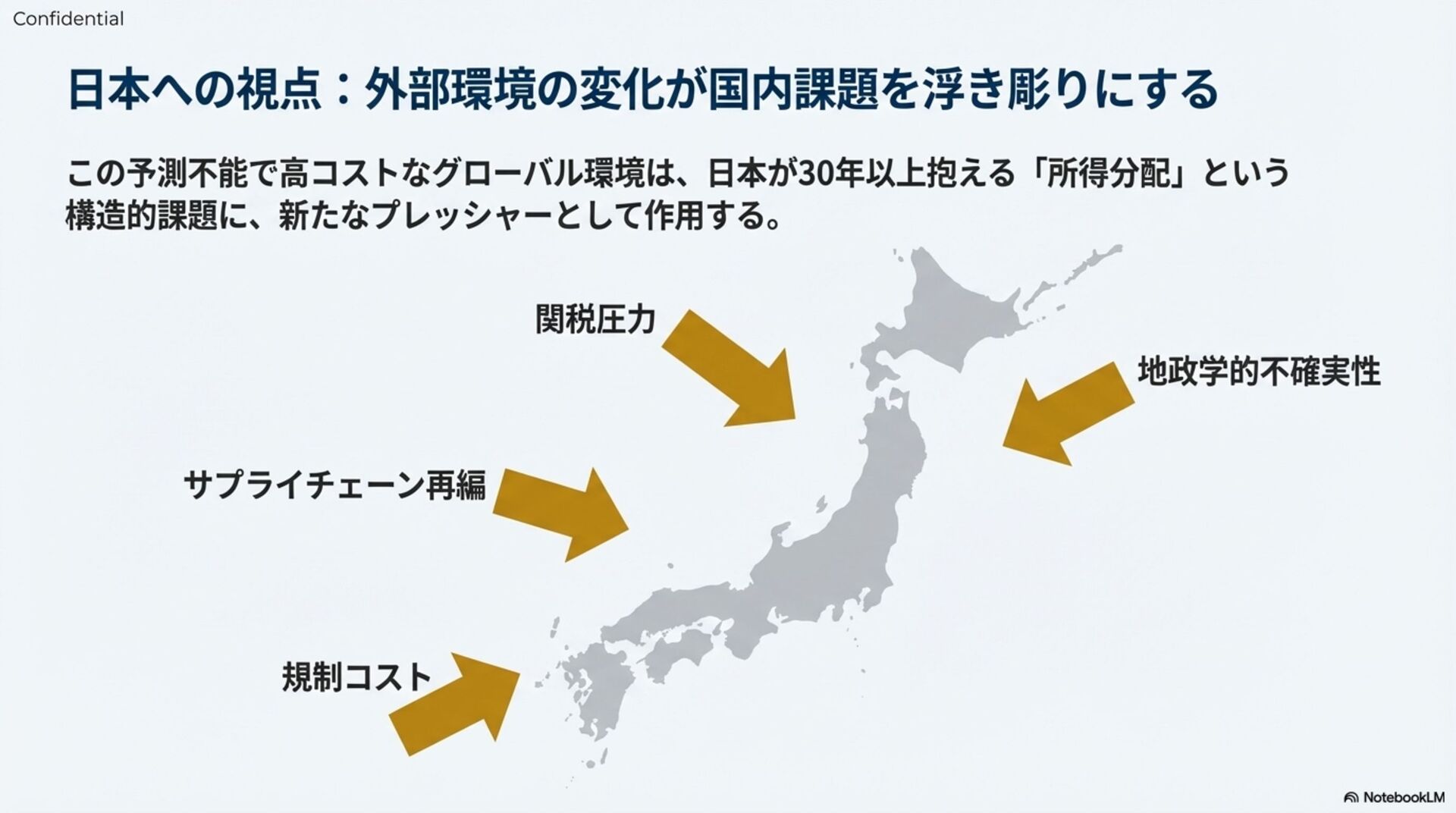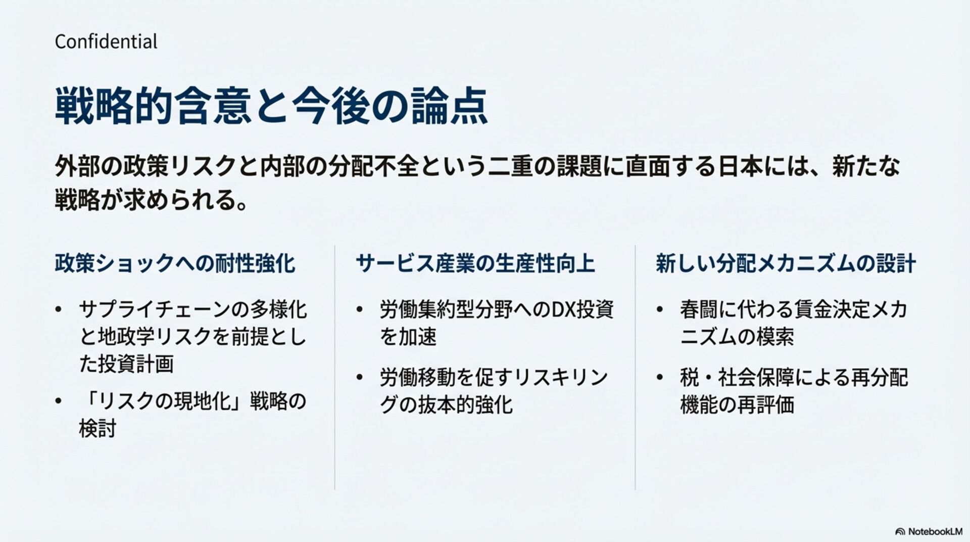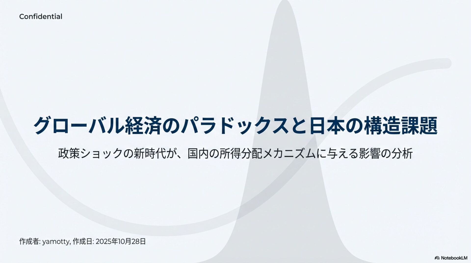- プレゼンテーションに使うわけではなく、あくまでリサーチ内容を読みやすいスライド形式に変換し、読者に「自身で読んで理解してもらう」ことを目的としたスライドである。