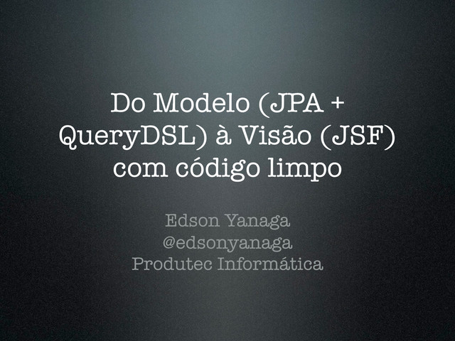 Um caso de uso bastante comum em sistemas que utilizam JSF é a criação de formulários de consulta utilizando vários critérios diferentes (com muitos deles opcionais). Partindo dos dados dos formulários costuma-se criar código inundado de condições (IFs) e com checagem de nulos (!= null) para compor Strings que resultam em consultas JPA. QueryDSL é uma ferramenta útil e produtiva para garantir a geração de Queries JPA 100% type-safe sem a concatenação dessas Strings e com outras facilidades como o auto-complete em IDEs. Nesta palestra demonstraremos como fazer o uso intensivo de tipos customizados, Converters, Null Objects e QueryDSL para produzir uma arquitetura enxuta, produtiva e type-safe no desenvolvimento deste caso de uso partindo do Modelo (JPA + QueryDSL) à visão (JSF).