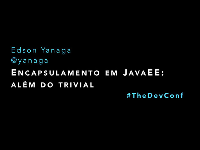 Sim, nós já sabemos que o código tem que ser bem encapsulado; e sim, nos também já sabemos que Domain-Driven Design é um ótimo conceito de ser aplicado. Mas muitas vezes faltam alguns exemplos mais elaborados para termos como referência. Nesta palestra veremos algumas técnicas de encapsulamento com APIs Java EE que vão um pouco além do trivial.